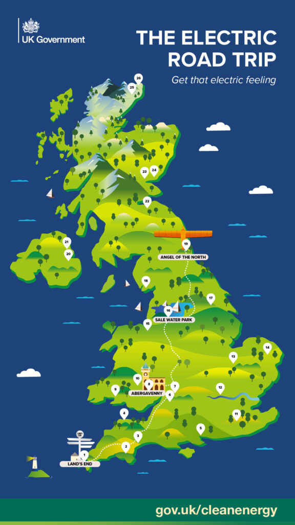 Several of the locations above are featured in the Department for Transport’s Electric Road Trip campaign, turning the UK’s public charging work into a nationwide road trip map.